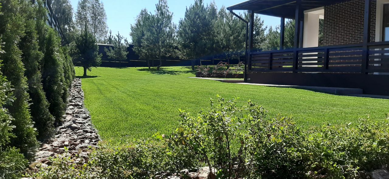 - Высокое качество газона. Обеспечим идеальный уход для участка. Начиная от снятия почвы до заранее подготовленного состава минеральных удобрений, необходимых для прорастания и роста травяной сумки.